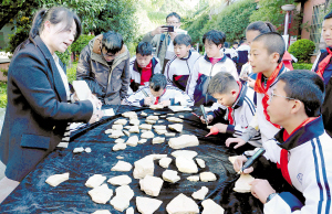 | 地质科普走进民大附中,专业人员向学生讲解化石标本修复。 记者杨艳辉摄 |