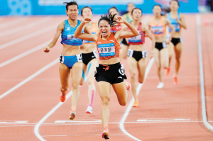 | 吴洪娇在女子800米跑中夺金,让云南实现中长跑成绩突破。 |