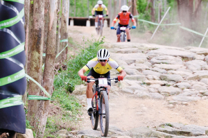 | 云南包揽山地自行车越野赛男子组前三和女子组亚军和季军。 本组图片由云南日报记者周灿摄 |