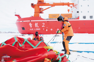 近日,正在执行中国第42次南极考察任务的“雪龙”号抵达南极中山站外围陆缘冰。“雪龙2”号已于北京时间11月25日率先抵达该区域。两船正协同开展中山站区域大规模卸货作业。本次作业将累计完成约2000吨各类物资卸运。按计划,整体卸货作业将持续约15天。据“雪龙2”号轮机长李文明介绍,“雪龙2”号是首次为考察站补给燃油。