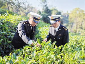 | 海关关员在出口茶叶种植基地开展监管。王涵摄 |
