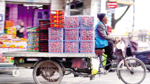 | 在昆明市金马正昌果品批发市场,运输水果的车辆络绎不绝。 |