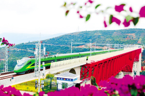 一路向南,中老铁路列车呼啸而来,拉动客货运输量质齐升。