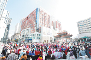 | 元旦假期,南屏步行街热闹非凡。记者黄晓松摄 |