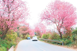 | 茂山镇盘山公路边绽放的冬樱花。 茂山镇供图 |