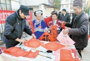 | 春联、“福”字送群众。 红土地镇供图 |