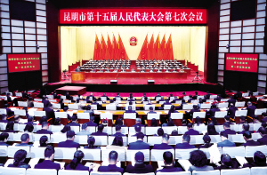 本报讯 记者杜仲莹报道 2月2日上午,昆明市第十五届人民代表大会第七次会议在昆明会堂隆重开幕。