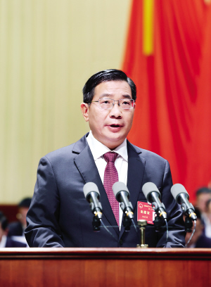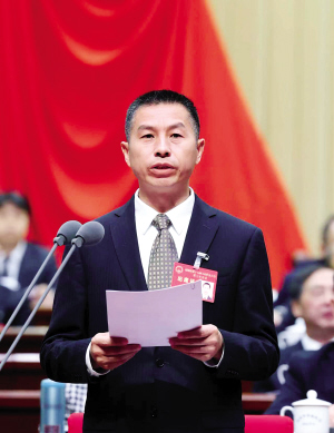 | 杨承新作政府工作报告。 |