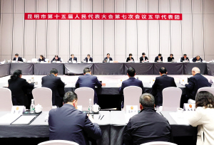 | 杨承新参加五华区代表团审议。 记者杨玺摄 |