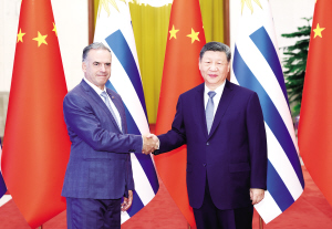 习近平指出,当今世界正处于百年未有之大变局,国际形势变乱交织,单边霸凌愈演愈烈,中方支持乌拉圭接任“77国集团和中国”轮值主席国,愿与乌方加强全球南方团结协作,共同推进平等有序的世界多极化、普惠包容的经济全球化,携手并进、共谋发展,为构建人类命运共同体作出更大贡献。中方始终重视中拉关系,支持拉美和加勒比国家维护自身主权、安全、发展利益,支持乌拉圭接任拉美和加勒比国家共同体以及南方共同市场轮值主席国,愿同乌方和地区国家推动共建中拉命运共同体走深走实。