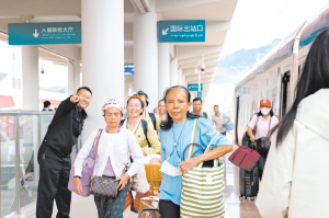 “现在坐火车回家,又快又舒适,还方便携带行李,省心了很多!”乘坐D88次国际旅客列车回家过年的昆明籍旅客张先生,一手提着行囊一手牵着孩子,脸上满是归家的喜悦。他们一家人在老挝从事汽车配件生意已有10多年,现在乘坐中老铁路国际旅客列车,从老挝琅勃拉邦出发,两个多小时就抵达磨憨口岸,通关全程不到10分钟,再过4个多小时,就能回家吃晚饭了。铁路开通前,同样的路程,得整整一天时间,又绕又累。