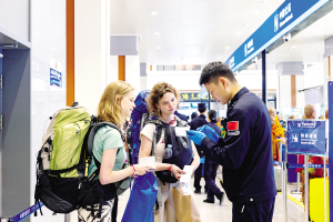 随着D88次列车入境,第一次来中国旅游的法国情侣盖洛德·让·加埃尔·约索和索菲·迪卡斯,在享受免签政策快速入境后,当被问及通关是否顺利时,两人异口同声地给出了简洁有力的回答:“很快捷!”