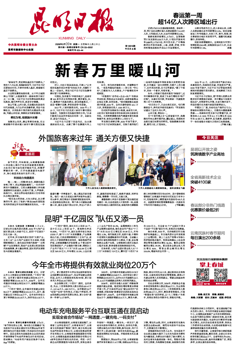昆明日报>> 2026年2月9日 >> A01