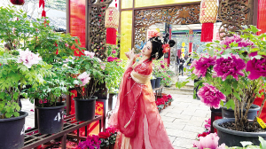 本届花展以“花漾昙华”为视觉主题,结合春节文化氛围,融入“马驮福至”等吉祥意象,突出“新春、团圆、祝福、共游”的核心体验;通过丰富的场景和装置设计,融合传统国风雅致与现代潮趣,营造喜庆的节日氛围。从全家福拍摄、游园集章打卡,到漆扇、花艺手作、茶道等非遗体验,财神送福、牡丹仙子等文化展示,再到“花影风雨廊”与“兰茂园”等花艺,让游客在游览中感受新春的热闹与美好。
