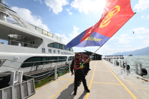 滇池之畔,波光潋滟。印有“昆明水警”字样的巡逻艇与救援船静静泊在滇池码头,随时待命。驻守在此的昆明市公安局水上分局“云凫”水域救援队,日夜守护滇池水域安全。