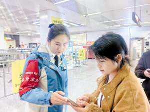 这几天,昆明地铁运营有限公司客运一部值班站长戚霞每天都会提前到岗,逐一检查消防设施和安检设备,细致排查隐患、合理安排人员分工。“对我们来说,每一趟列车的安全发出,都意味着更多家庭能够团圆。”戚霞说,春运承载着旅客对家的期盼,她的责任就是守好这条归乡路。运营期间,她穿梭在地下深处的站厅、站台、换乘通道,反复核查消防器材完好性与摆放规范性,在杜绝安全隐患的同时,看见有旅客不会操作自助售票机,便主动上前协助;遇到咨询换乘路线、发车时间的旅客,始终耐心解答。