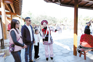 “过年好!欢迎来到云南民族村哈尼族村寨,今天有特色民俗拜年活动。”云南民族村讲解员刘镇梅身着少数民族服饰,穿梭在各民族村寨间。这已是她第十个春节坚守在岗位,刘镇梅一如继往地用真诚的服务与专业的讲解,让五湖四海的游客读懂云南民族风情,感受春城温度。