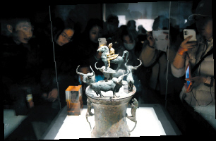 | 晋宁石寨山出土的西汉时期鎏金骑士贮贝器。 |