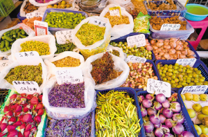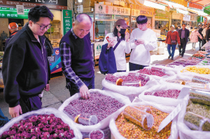| 顾客在市场内挑选玫瑰花茶。 |
