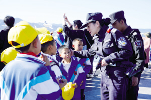 | 向孩子们宣传文明观鸥。 昆明市公安局度假分局供图 |