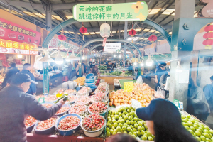 与此同时,金马正昌果品市场则专注于提升果盘子的品质与丰度。作为供应全市九成以上水果的核心市场,其节前日均销量从平时的5000吨跃升至8000吨。这不仅保障了苹果、柑橘等传统年货的充足,更通过优化的供应链,让车厘子、蓝莓等进口及精品水果的价格更加亲民,使“水果自由”从节日尝鲜变为大众消费。