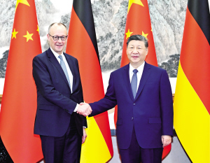 | 2月25日下午,国家主席习近平在北京钓鱼台国宾馆会见来华进行正式访问的德国总理默茨。 新华社 |