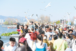 | 海埂大坝人鸥同乐。 本组图片记者王俊星摄 |
