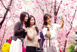 图为3月7日,游客在昆明动物园内拍照打卡。