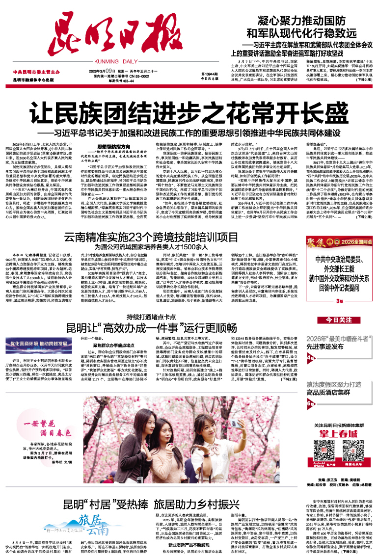 昆明日报>> 2026年3月9日 >> A01