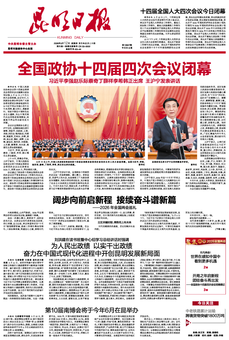 昆明日报>> 2026年3月12日 >> A01