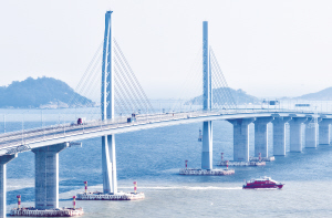 | 2025年10月19日,客船驶过港珠澳大桥九洲航道桥(无人机照片)。 新华社 |