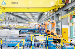 | 在西南铜业生产车间,高效精密的机械手日夜不停工作。 记者李海曦摄 |