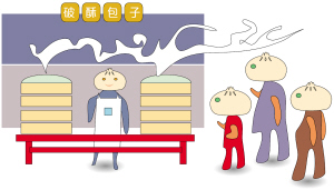但昆明人认为,这个“破”字也是有来历的。据说有老人带着小孙子到“少白楼”买包子,小孙子没有接好,包子掉到地上,竟然摔成好几瓣,围观者无不称奇。赖八另给小孩一个包子,接着就打出了“破酥包子”的招牌——意思是我这包子酥得厉害,落地都会摔成八瓣!