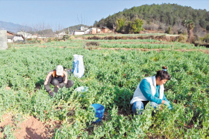 近年来,云龙乡立足土地资源和气候优势,通过“烤烟+豌豆”“玉米+豌豆”“板栗+豌豆”等轮种模式,提高土地利用率和产出率,让“冬闲田”变“增收田”,有效拓宽了农民增收渠道。据统计,2026年云龙乡种植青豌豆超8000亩,带动2500户农户参与种植,预计产值超1000万元。