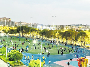 | 校园里迎来亲子运动人群。 供图 |