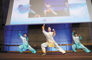 新华社电 首个“国际太极拳日”即将到来之际,以“健康生活,太极同行”为主题的庆祝活动3月18日在法国巴黎联合国教科文组织总部举行。来自中法两国的太极拳习练者同台献艺,展现太极拳的独特魅力与深厚内涵,向世界传播中华优秀传统文化和科学健康的生活方式。