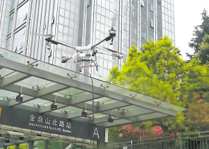 “嗡——”伴随着轻微的机械运转声,一架经过改装的大疆T60无人机稳稳悬停在昆明地铁4号线和甸营站的玻璃顶棚上空,机身下方挂载的高压水枪精准喷射出清洁液,20多分钟便完成高空清洗作业。