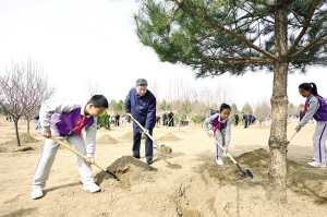 在京中共中央政治局委员、中央书记处书记、国务委员等参加植树活动。